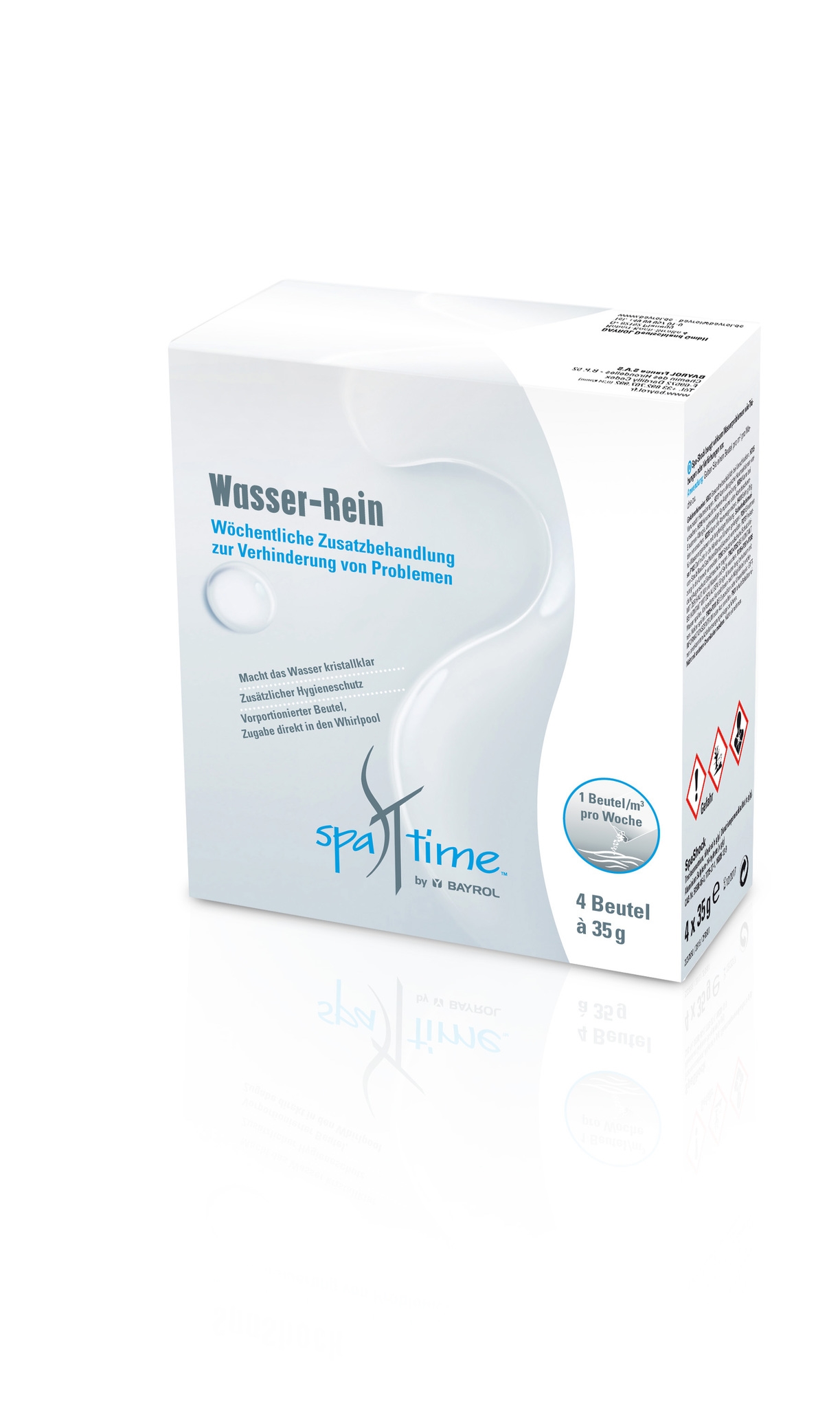 SpaTime Wasser-Rein 0.14 kg (4 Beutel à 35g) Dosierung: 1 Beutel pro Woche Art. Nr: 021204 Alter Preis: 16.00 CHFAlter Preis: 14.40 CHF exkl. MwSt. Kurzbeschreibung Wöchentliche Basisbehandlung zur optimalen Wasserpflege In den Warenkorb ZusatzinformationenDokumente Aufgrund seiner chemikalienrechtlichen Einstufung unterliegt dieses Produkt besonderen Lieferbedingungen. SpaTime Wasser-Rein_Gefahrenhinweis.pdf SpaTime Wasser-Rein_Produktebeschrieb.pdf SpaTime Wasser-Rein_Sicherheitsdatenblatt.pdf